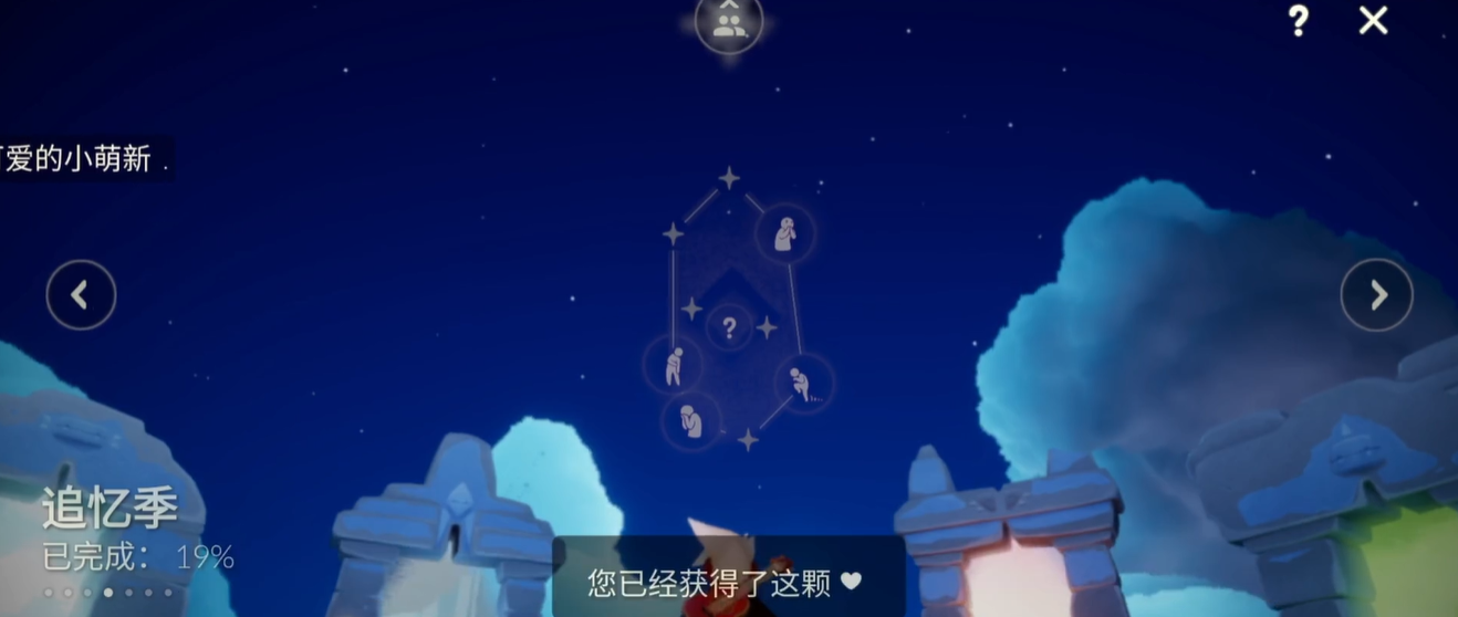 依据壁画线索的指引,玩家需在圣岛各处进行探索以定位编钟。编钟的藏匿地点多样,可能位于瀑布后方、浮空岛的洞穴内、水下通道、巨型雕像附近或云端高处等场景中。靠近目标编钟时,游戏会出现互动图标,点击即可完成碎片的收集。完成单个编钟的收集并不意味着任务结束,玩家必须返回向导先祖所在的位置,再次与其互动并提交任务,才能正式完成该步骤并解锁后续任务,同时领取任务奖励,例如季节爱心。