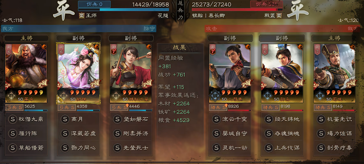 实战中需注意兵种进阶与装备搭配,骑兵进阶优先提升速度与谋略属性,装备选择智力、谋略伤害加成词条,程昱可搭配援助甲进一步提升生存,面对太尉盾、蜀智等主流队伍时,依靠减伤扛过前期爆发,通过贾诩控制打乱阵型,再由程昱收割残局,平替方案可选用御敌屏障替代抚辑军民,坐守孤城替代刮骨疗毒,兵无常势替代杯蛇鬼车,降低成型门槛同时保留核心机制,让不同资源储备的玩家都能发挥魏法骑的强度。